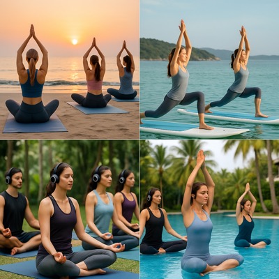 휴양지에서는 해돋이 요가, 서핑 요가, 사일런트 요가, 아쿠아 요가 등 자연과 어우러진 이색 요가 특강이 인기를 끌고 있어요.